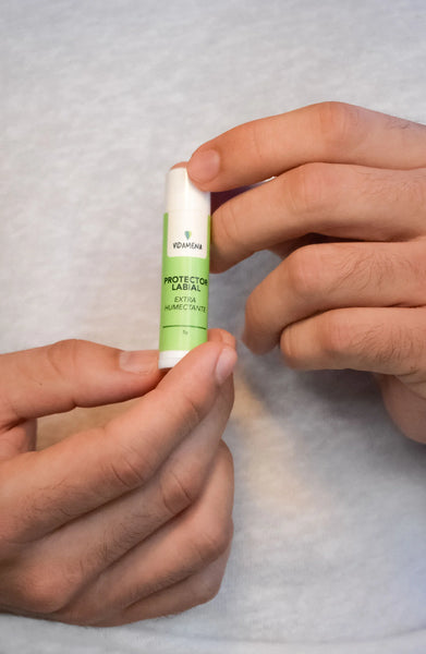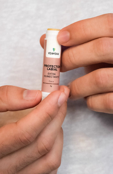 El Protector Labial Extra Humectante de Vidamena está formulado con una poderosa mezcla de aceite de coco, aceite de Sacha Inchi, mantecas naturales de mango, cacao y karité, y cera de candelilla, que reemplaza la cera de abejas para ofrecer una opción 100 % natural y vegana.